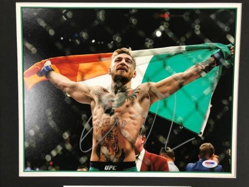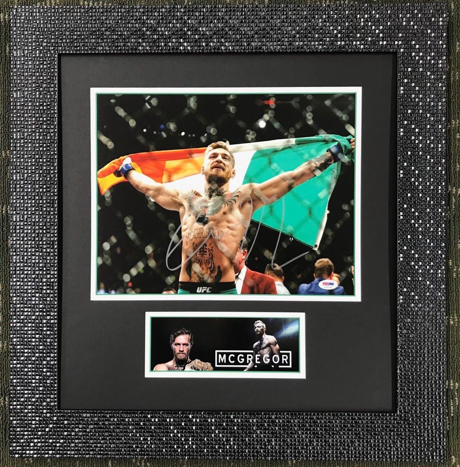 CONOR McGREGOR authentic signed Irish Flag 11×14 custom framed display PSA Conor McGregor memorabilia. memorabilia