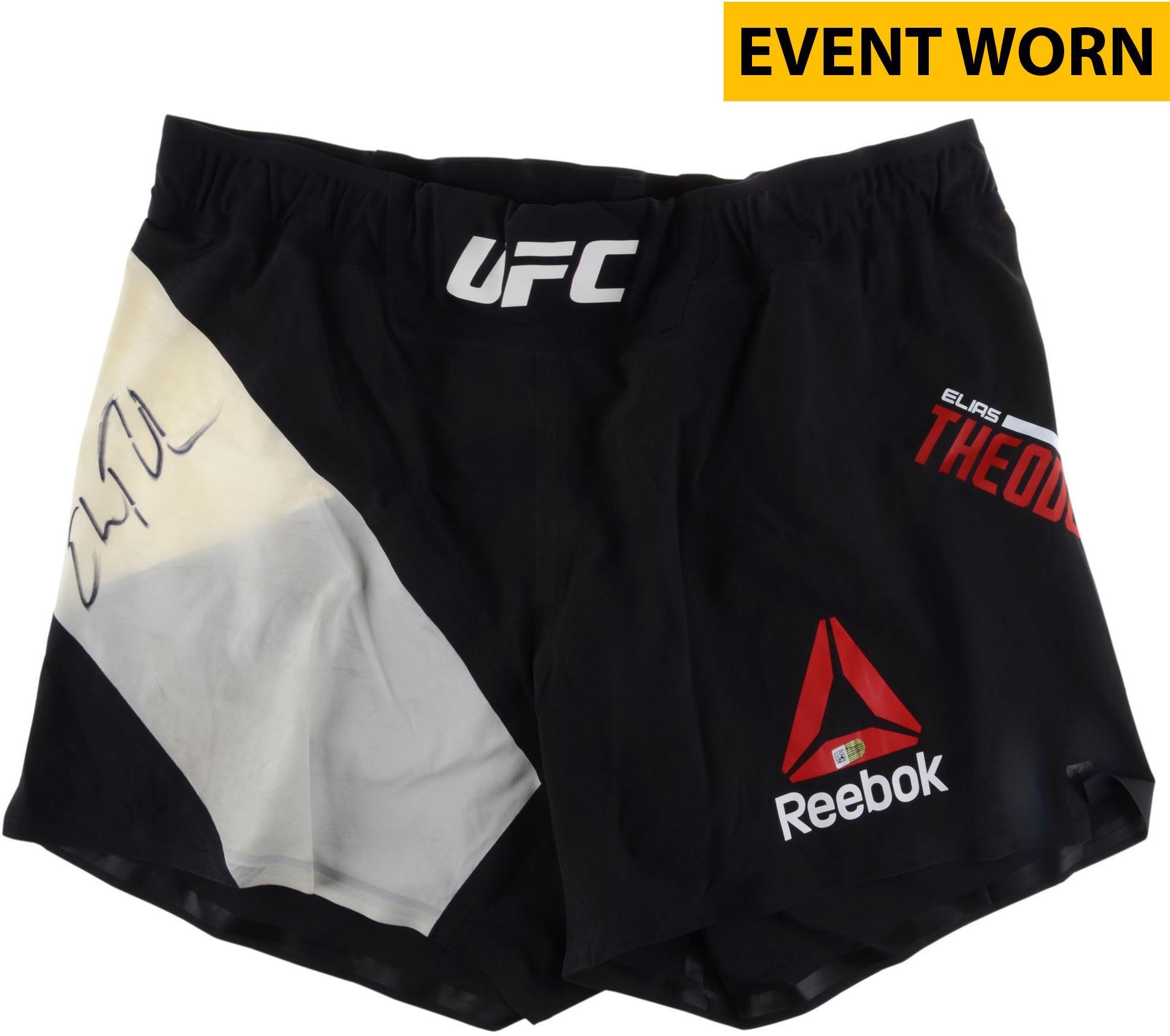These shorts were worn and personally hand-signed by Elias Theodorou. They are officially licensed by the UFC and comes with an individually-numbered, certificate of authenticity from the UFC. To ensure authenticity, the certificate can be verified online. This process helps to ensure that the product purchased is authentic and eliminates any possibility of duplication or fraud. Elias Theodorou memorabilia. memorabilia