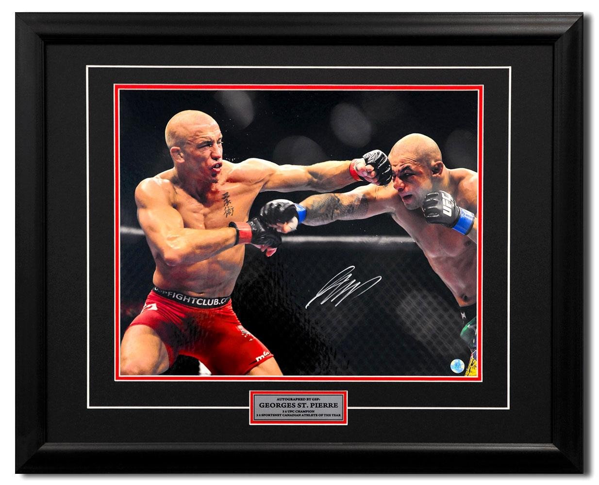 Georges St. Pierre GSP Autographed UFC Fight Head Punch 25×31 Frame – Boxing Plaques and Collages